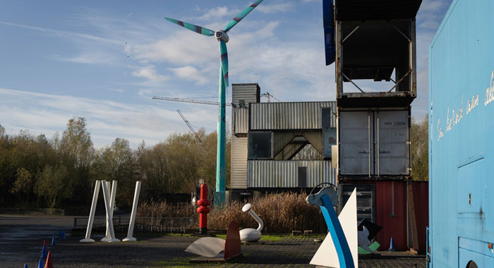 STEKENE. Sinds vorige week is de Verbeke Foundation tijdelijk een kleurrijke blikvanger rijker: een windmolen van energieplatform Bolt. De windmolen zal deze winter de kunstsite van groene stroom voorzien.