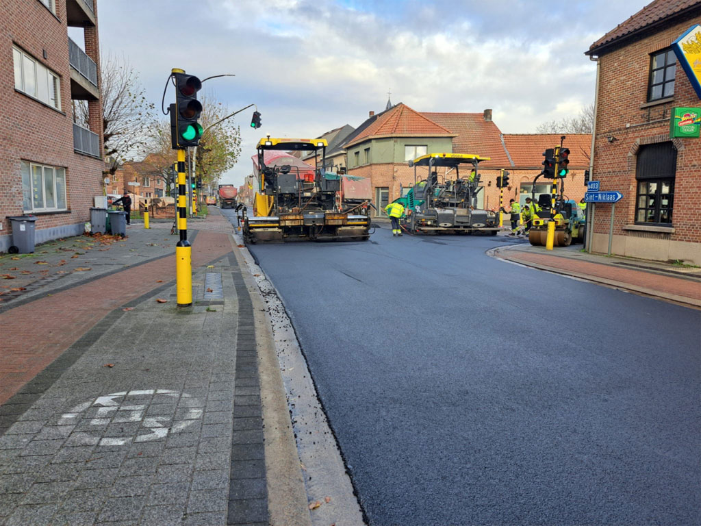 De werken hebben echter vertraging opgelogd door enerzijds het slechte weer en anderzijds door een slechte ondergrond. Dezer dagen worden de asfalteringswerken van de rijweg uitgevoerd. De komende dagen worden de fietspaden geasfalteerd, worden markeringen aangebracht en worden de lussen voor de verkeerslichten ingeslepen. Tegen vrijdagavond 28 november moeten alle werken afgerond zijn en kan de weg terug opengaan. Tot die tijd blijven de bestaande omleidingen en andere verkeersmaatregelen van kracht. Bestemmingen binnen de werfzone blijven dus onbereikbaar voor gemotoriseerd verkeer en fietsers kunnen enkel langs de werfzone met de fiets aan de hand. (mb, foto: © Agentschap Wegen en Verkeer)