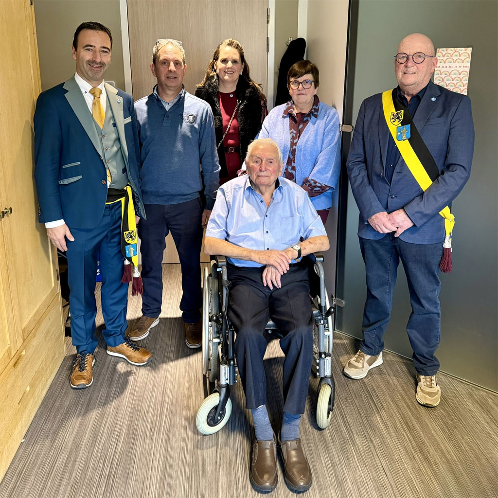Klingenaar Theofiel Van Overloop, bekend van het verwarmingsbedrijf Van Overloop, werd door burgemeester Koen Daniëls (N-VA) en schepen Dirk Van Raemdonck (N-VA) gehuldigd voor zijn honderdste levensjaar. Dat gebeurde in woonzorgcentrum Vlashof in de aanwezigheid van zijn zoon Guy en zijn schoondochter. Gemeenteraadslid Stephanie de Kind (N-VA), die beroepshalve verbonden is met het Vlashof, woonde de huldiging bij. "Theofiel is het beste bewijs dat hard werken mensen jong houdt. Tot zijn tachtigste levensjaar deed hij nog interventies voor het familiale verwarmingsbedrijf Van Overloop uit de Klinge. Zijn levenswerk wordt verder gezet door zijn zoon Guy en zijn kleinzoon Geert.", zegt burgemeester Daniëls. De eeuweling werd getrakteerd op een lekkere ontbijtmand, cadeaubonnen om te winkelen in Sint-Gillis-Waas en gelukwensen van het koninklijk paar. (mb, foto: © Gemeente Sint-Gillis-Waas)