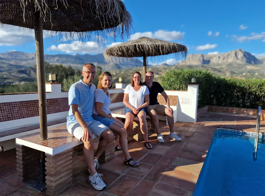 De haciënda van onze Nederlandse gastheer en gastvrouw ligt midden de olijfgaarden en op loopafstand van het dorp Riogordo. Onze huurwagen kan makkelijk en veilig geparkeerd worden op het domein zelf. Het dorpje biedt verschillende supermarktjes waar we werkelijk alles vinden wat we nodig hebben, van verse producten tot nationale favorieten. Het gemak van de nabijheid maakt ons verblijf gedurende de hele periode nog aangenamer. Direct vanuit de B&B starten fantastische wandelroutes met diverse afstanden. Of we nu een korte wandeling willen maken of een uitdagende tocht, we hebben het simpelweg voor het uitkiezen. Na een hartelijke kennismaking annex welkomstdrankje tronen Harmke en Menno ons naar ons eigen paleisje. Help, keuzestress: de ene kamer ligt aan het riant zwembad met gratis handdoeken en parasols, de ander heeft een betoverend uitzicht over de Montes de Málaga en kiezen we voor het appartement dan beschikken we over een eigen keuken. En overal op de haciënda is wel een plekje te vinden om te mijmeren, te ontspannen of simpelweg van het uitzicht te genieten.