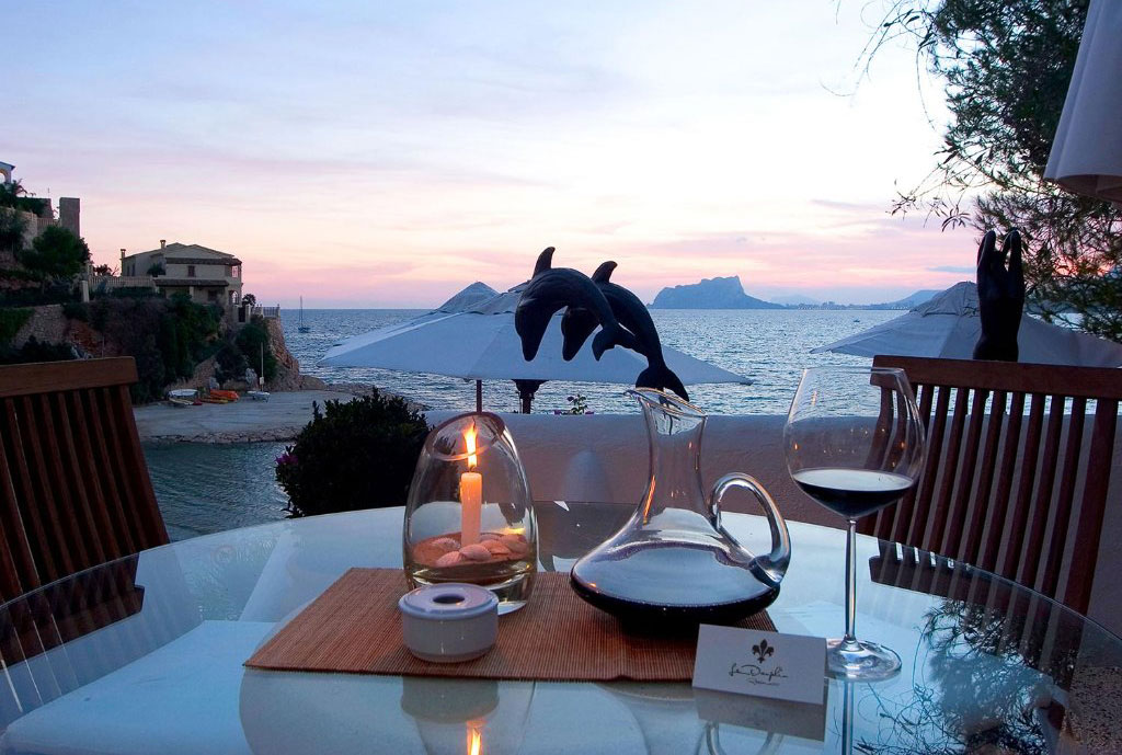 Op dag twee trekken we naar Moraira, een klein typisch Spaans vissersdorpje dat gelukkig in zijn glorie bewaard is gebleven en waar hoogbouw nagenoeg verboden is. Het witte dorpje met zijn prachtige haven, gelegen in één van de mooiste baaien met azuurblauw water is erg uitnodigend om gezellig in rond te slenteren en de kleine straatjes met leuke winkels te ontdekken. Aan de haven en dichtbij zee bevinden zich eveneens vele gezellige bars en lekkere restaurants. Moraira heeft drie stranden en er zijn vier baaien: Cala Cap Blanc, Cala L’Andragó, Cala Portixol en Cala Llebeig. De meeste van deze lieflijke baaitjes zijn alleen met de auto bereikbaar of de motorboot van Guy en Kathy. De strandjes El Portet, L’Ampolla en Les Platgetes zijn zandstranden met blauw en helder zeewater. ’s Avonds hebben we een tafeltje geserveerd in Restaurant Le Dauphin dat door de Vlaming Bert Wets gerund wordt. Nadat we via de imposante trappen de tuin vol kunst passeren, worden we ontvangen door een charismatische maître. Veel kunst en bloemen fleuren het verzorgde interieur op. We hebben uitzicht op de zelfontworpen kunst van bronzen sculpturen en enkele oude lithografieën uit de 19e eeuw. En de zee aan onze voeten! Met het beste Bertrand Paris zilveren bestek en elegante pure kristallen glazen passeren de smakelijkste schilderijtjes. Vis- en vleesgerechten die ons op het puntje van onze stoel krijgen.