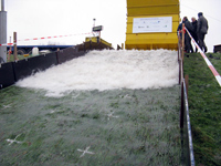TIELRODE. Van maandag 29 november tot midden december 2010 worden in opdracht van het Waterbouwkundig Laboratorium en Vlaams waterwegbeheerder Waterwegen en Zeekanaal NV golfoverslagproeven uitgevoerd in het gecontroleerde overstromingsgebied Tielrodebroek nabij Temse. Het doel van dit project is te onderzoeken hoe sterk onze dijken zijn bij overslaande golven. Men kijkt daarbij naar erosie en afschuiving van de grasbekleding. of hoe sterk is de grasbedekking op de dijk?