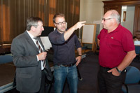 Woestijnvis, het productiehuis van Wouter Vandenhaute, is bekend van onder andere populaire programma's 'Man bijt hond', 'De Laatste Show' en 'De Slimste Mens'. Een opnameploeg is neergestreken in Temse voor opnames van het programma 'Met man en macht' met onder meer Jan Decleir, Tom Van Dyck, Koen De Graeve en Sara De Roo in de hoofdrollen. De serie speelt zich in het fictieve dorp Ransegem waar burgemeester Van Opstal al 17 jaar als een goed burgervader bestuurt. Een half jaar voor de gemeenteraadsverkiezingen wordt het anders zo rustige dorp wakker geschud door een politiek strijdtoneel tussen tien dorpsbewoners. Met Man en Macht, geschreven en geregisseerd door Tom Van Dyck en Tom Lenaerts, gaat over keuzes tussen gezin en carrière, tussen eigenbelang en gemeentebelang, een verhaal over ambitie, politiek en idealisme. De serie wordt in het najaar van 2012 uitgezonden. (mb)