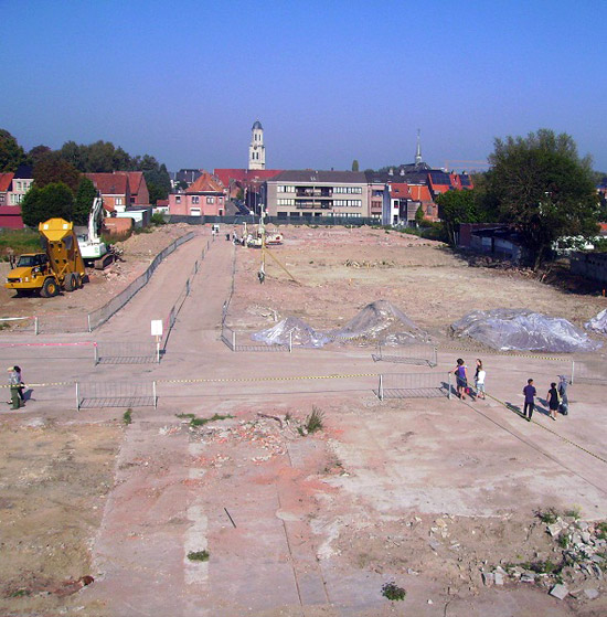 De afgravingsputten worden opgevuld met propere grond. Alles samen betekent dit dat er naar schatting minstens 5.000 vrachtwagenladingen aan- of afgevoerd worden. Aan de achterzijde van het terrein werd een speciale werftoegang gecreëerd, zodat overlast door vrachtwagens in het stadscentrum vermeden kon worden.