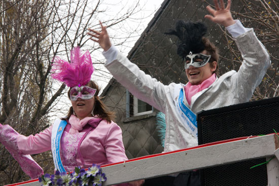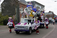 BURCHT. Gisteren, zondag 15 april, reed de vijfde stoet van carnavalvereniging De Knuffelberen uit. Van de aangekondigde veertien wagens verschenen er twaalf aan het startpunt aan het Kerkplein. Dat de stoet een week na het paasfeest uitreed, deed geen afbreuk aan de pret die op de wagens werd beleefd. Al zorgde de ijzige scheldewind voor bibbermomenten. De stoet vertrok rond 14.15 uur richting Zwijndrecht om na een ronde van 4,5 kilometer te eindigen aan café De Vrede, de thuisbasis van De Knuffelberen. (mb)