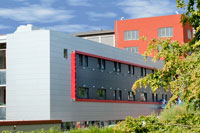 Over de ganse lengte van het gebouw is een grote zonnewering aangebracht, wat de kosten voor het koelen tot een minimum beperkt.