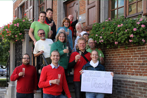 KEMZEKE. Leden van GPS en sp.a Stekene hebben aan het oud-gemeentehuis van Kemzeke een ludieke actie gehouden. De kartelpartners willen het pand een nieuwe toekomst geven als feestzaal en om die vraag kracht bij te zetten, werd een er receptie gehouden op de trappen van het voormalige gemeentehuis. (mb)