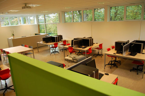 De werken om van het voormalige bibliotheekgebouw een modern schoolgebouw te maken, startten in maart 2012. Voor de inrichting van de lokalen koos de school voor ecologisch verantwoorde en duurzame materialen. Verder ging er heel wat aandacht naar de keuze van kleuren, waarbij groen de belangrijkste is. "Het is zoveel leuker leren in een mooie bosrijke en rustige omgeving", klinkt het. Het groen staat ook symbool voor de ecologisch bewuste keuze voor het meubilair. Ingrid Ghys en Sandra De Grave van de schooldirectie omschrijft het nieuwe gebouw, het Leerhof als volgt: " We willen in Het leerhof graag op een dynamische en creatieve manier nieuwe kansen creëren voor allerlei leerexperimenten. Leerlingen die zelfontdekkend leerstof verwerven met de leraar als coach. Leerlingen kunnen er creatief zijn, kunnen er zelf informatie opspeuren onder andere in een nieuw virtueel kantoor, in multimedia lokalen en in een goed uitgerust muzieklokaal." (mb)