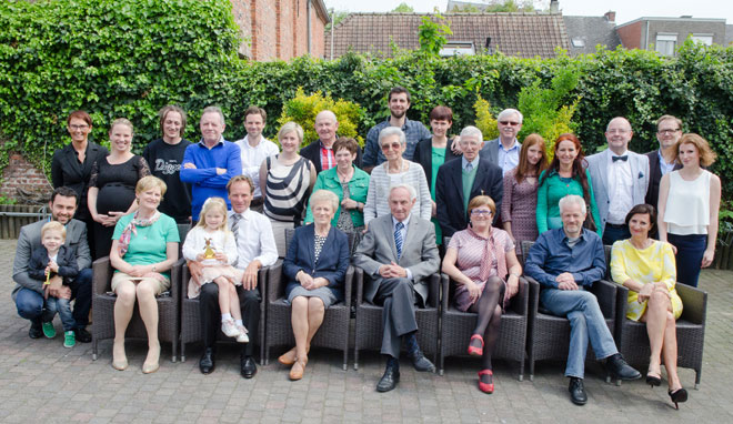 Frans was adjunct-diensthoofd van de Personeelsidenst van de Christelijke Mutualiteit in Brussel, Gilbert was (kleding)verkoopster bij de INNO. De jubilarissen hebben 2 zonen, 3 dochters, 7 kleinkinderen en 2 achterkleinkinderen. (mb)