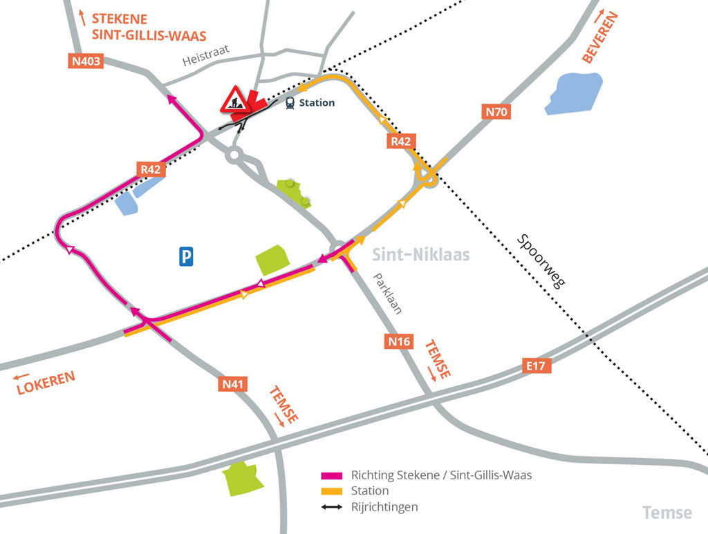 Het verkeer van en naar Stekene/Sint-Gillis-Waas kan zich verplaatsen via de N403, de Westelijke Tangent en de N70. Ook het centrum van Sint-Niklaas blijft toegankelijk voor het verkeer. Vanuit Stekene en Sint-Gillis-Waas kan je naar het centrum via de Plezantstraat (N403).