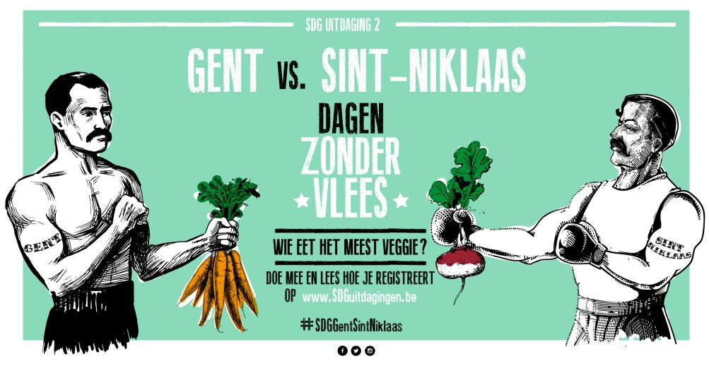 De steden Sint-Niklaas en Gent voeren al lang actie rond duurzaamheid en vegetarisch eten. In beide steden is donderdag 'veggiedag'. In het kader van Sustainable Development Goals (SDG) daagde Gent Sint-Niklaas om zoveel mogelijk inwoners en stadspersoneel te motiveren om deel te nemen aan 'Dagen zonder vlees'. Alexia Leysen van de organisatie achter de actie was blij met het duel: "De twee steden hebben een voortrekkersrol. Een groeiende inzet van steden, gemeenten, scholen en bedrijven betekent dat er meer en meer draagvlak is voor een duurzamere toekomst en dat is hoopvol." Beide steden deden hard hun best en bespaarden samen meer dan 251.000 m², het personeel van beide steden ongeveer 50.000 m². Verhoudingsgewijs hebben de Gentse inwoners gewonnen van de Sint-Niklase bevolking. Het personeel van Stad en OCMW Sint-Niklaas had verhoudingsgewijs dan weer de grootste gespaarde ecologische voetafdruk. Dat brengt de eindstand op 1-1.