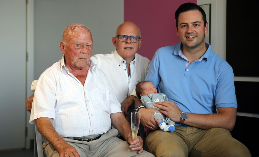 SINT-NIKLAAS. De familie De Waele viert dubbel feest: op 17-07-17 werd Walter De Waele geboren, de zoon van Yannick, kleinzoon van Peter en achterkleinzoon van Walther De Waele. Met de geboorte van Walter heeft de familie een viergeslacht. Het nieuws werd in de familie heugelijk ontvangen. (mb)