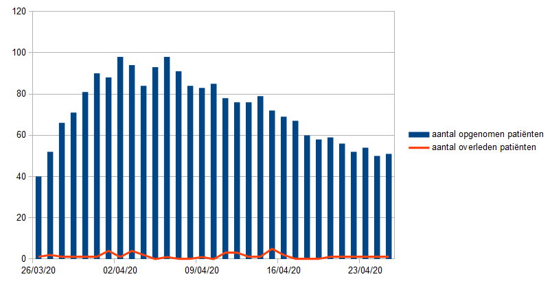 De voorbije 24 uur is 1 persoon overleden aan de gevolgen van de COVID-19. Drie personen mochten het ziekenhuis verlaten. (mb)