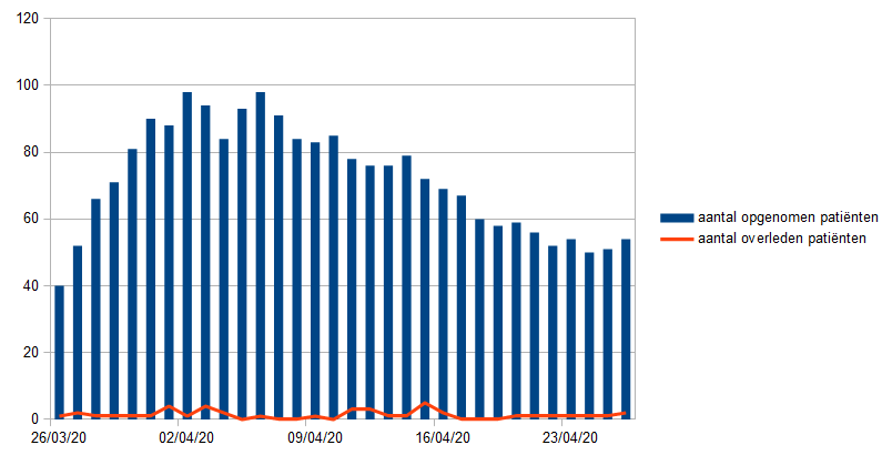SINT-NIKLAAS/LOKEREN. In AZ Nikolaas en AZ Lokeren zijn momenteel 54 personen opgenomen die besmet zijn me COVID-19. Daarvan worden 9 personen behandeld op intensieve zorgen. Ook zijn 3 personen opgenomen die vermoedelijk besmet zijn maar waarvan het testresultaat nog niet bekend is.