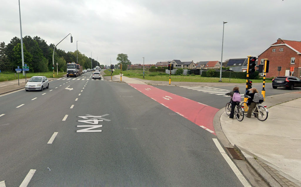 In 2025 zullen ook de kruispunten van de N41 met de Biezestraat, Noordstraat, Veldstraat, Broekstraat / Hooirt en Neerstraat worden aangepakt. Dat zal gebeuren na de heraanleg van de N446 in Waasmunster. (mb, foto: © Google)