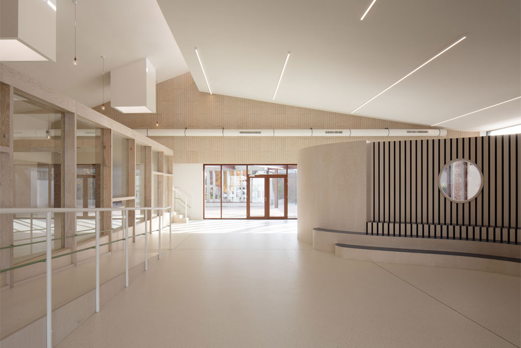 Door de verhuis van de kinderopvang is de speelplaats van de aanpalende stedelijke basisschool Spoele (SBS Spoele) een stuk groter geworden. De voor speelplaats lonkt vernieuwing: het pleintje wordt onthard en heraangelegd met aandacht voor meer groen. (mb, foto: © Studio Bourgeat)