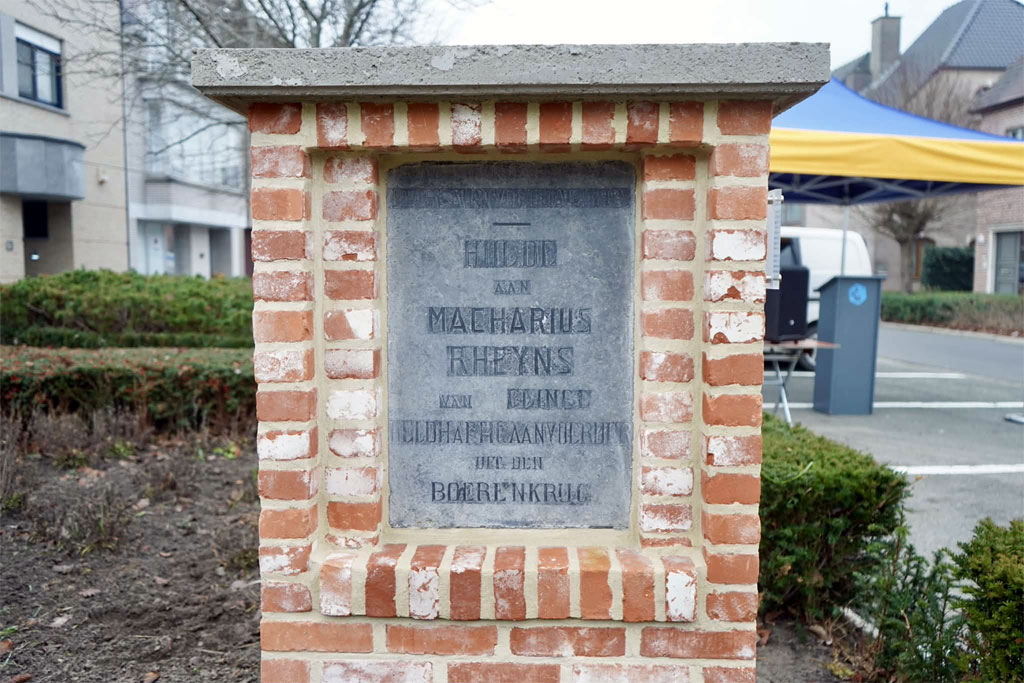 De herdenking maakt deel uit van de vernieuwde aandacht van het gemeentebestuur in erfgoed. Macharius Rheyns is als een van de Wase leiders van de opstand tegen het Franse gezag herdacht. Over de man zelf is helaas niet zo heel veel bekend. "We hebben geen afbeelding of gravure van hem, maar zijn naam duikt regelmatig op in de geschriften van de Boerenkrijg in het Waasland. Na opzoekingswerk kunnen we bevestigen dat hij op 18 april 1774 is geboren in Sint-Gillis-Waas en dat hij op 18 december 1850 is overleden in Clinge (NL) we zijn dus dichtbij zijn 175 jaar overlijden", aldus D’hanis.