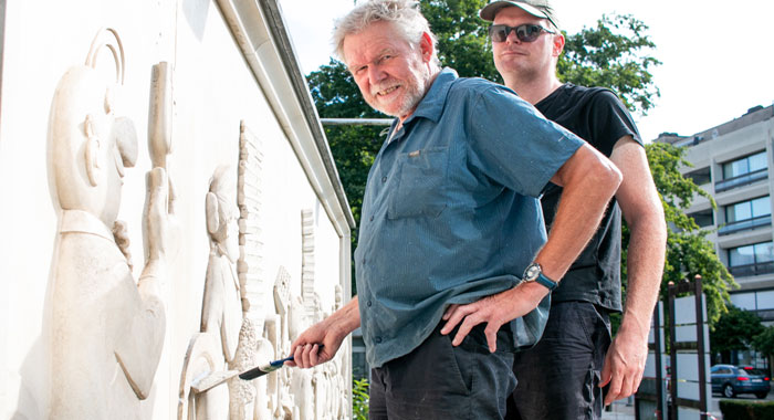 SINT-NIKLAAS. Het bas-reliëf Wafelenbak aan de Bib op het Hendrik Heymanplein is helemaal opgefrist. Het werk van Paul Dekker, met alle hoofdpersonages uit de strip Nero, werd onder handen genomen door beeldend kunstenaar en restauratiespecialist Luc Heirbaut samen met Nicolas Baeyens. Zij hebben het werk gereinigd, waar nodig hersteld en voorzien van een beschermlaag die het werk moet beschermen tegen het weer.