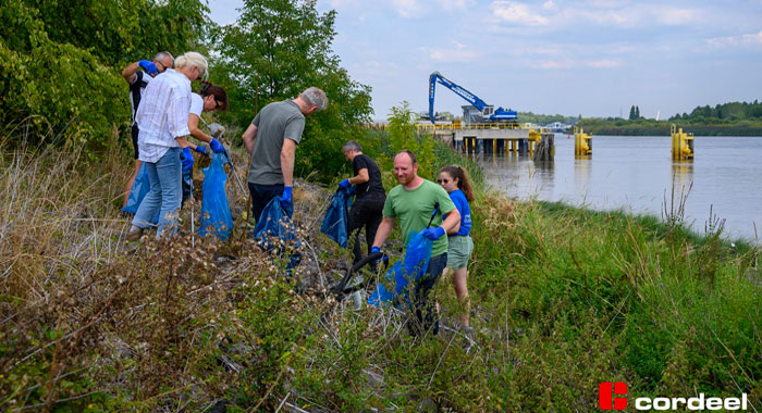 TEMSE. Afgelopen donderdag, 25 augustus, hielden 35 medewerkers van de Cordeel Group en leden van vzw River Cleanup een opkuisactie langs het droogdok van de voormalige Boelwerf in Temse. Bij aanvang werd nog gedacht om 70 kilogram afval op te halen maar werd het maar liefst 240 kilogram. Niet alleen aan de oevers maar ook langs het fietspad en in de gracht aan de Frank Van Dyckelaan werd afval opgehaald. Een grote hoeveelheid afval afkomstig van de oude Boelwerf werd bovendien gerecupereerd.