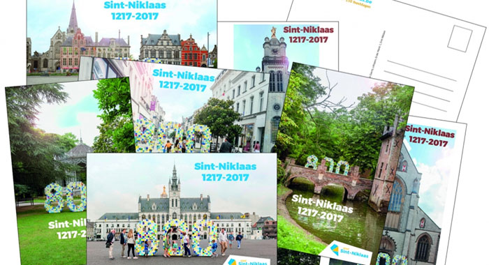 SINT-NIKLAAS. Dit jaar bestaat Sint-Niklaas 800 jaar en dat zal iedereen geweten hebben. Elke maand zijn er wel nieuwe activiteiten om dit jubileum te vieren. Om de stad en haar jubileum te promoten verspreidt het stadsbestuur enkele gadgets zoals stickers en postkaarten.