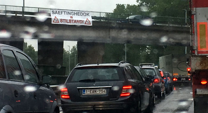 ANTWERPEN/DOEL. Eerder deze week verschenenn op de Antwerpse ring  spandoeken met de tekst 'Saeftinghedok = stilstand', een protest tegen de plannen van het Saeftinghedok en de daaraan gekoppelde verkeersdruk.