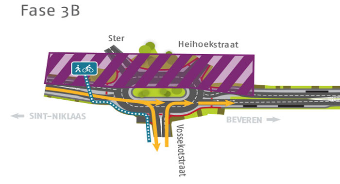 SINT-NIKLAAS. De herinrichtingswerken aan de N70 tussen Sint-Niklaas en Beveren gaan op dinsdag 17 mei een nieuwe fase in met werken aan de noordzijde van de rotonde 'Ster' op de Grote Baan (N70) in Sint-Niklaas.