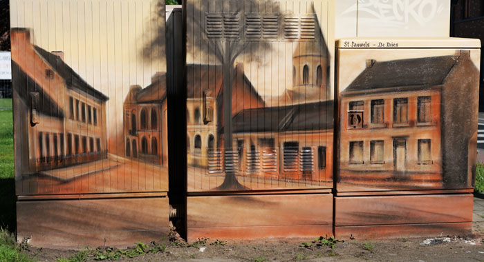 SINT-GILLIS-WAAS. Verschillende elektriciteitskasten in alle deelgemeenten van Sint-Gillis-Waas zijn sinds kort omgetoverd tot kleine kunstwerken. Dat gebeurde door professionele kunstenaars in de opdracht van de gemeente. Elk van de kunstwerken heeft een link met de geschiedenis van een locatie of een prestatie van ereburgers.