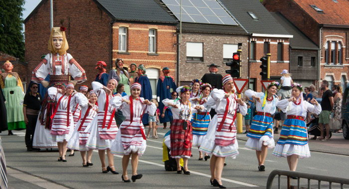 SINT-NIKLAAS. De Sint-Niklase volkskunstgroep Speelschaar Ossaart was afgelopen weekend te gast in Wales. In het prachtige Tredegar House Park in Newport bracht de groep traditionele Vlaamse dansen, vendelzwaaien en zwaarddansen. Ook andere Europese volksdansgroepen waren er te gast op het driedaags festival.