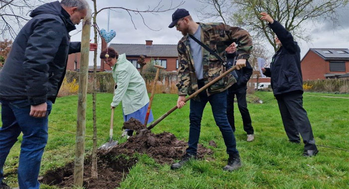 SINT-NIKLAAS. Onder ruime belangstelling is vanmorgen, zaterdag 16 maart 2024, in de groene zone tussen de Abingdon- en Gorinchemstraat een vredesboom geplant door Pax Christi Sint-Niklaas.  De boom werd opgefleurd met werkjes van bewoners van vzw De Klokke en WZC Gerda.