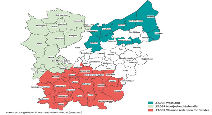 OOST-VLAANDEREN. Er zijn in onze provincie drie LEADER-gebieden erkend voor de periode 2023-2027: Waasland, Meetjesland-Leievallei en Vlaamse Ardennen tot Dender. Deze drie gebieden kunnen rekenen op subsidies om het gebied duurzaam te ontwikkelen en de plaatselijke uitdagingen op het platteland aan te pakken.